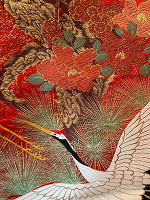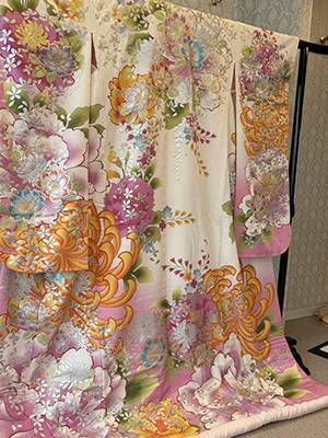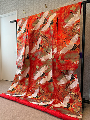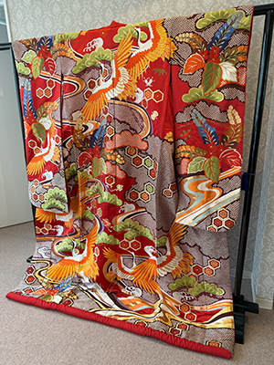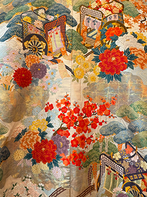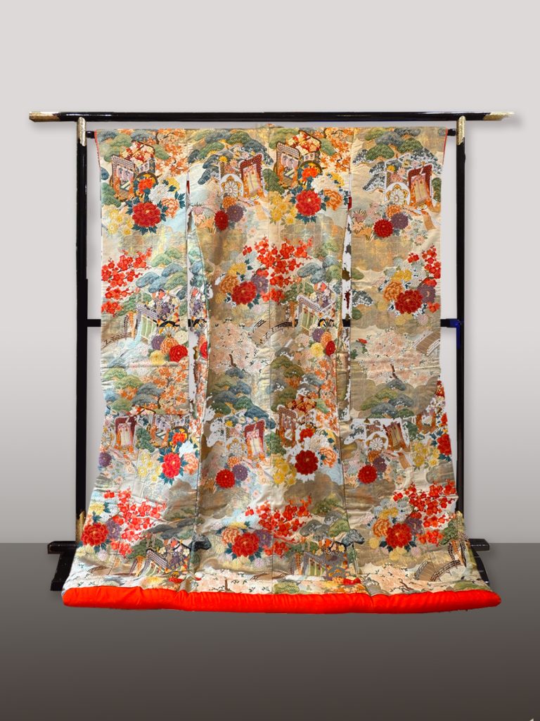 A traditional Nishijin-ori colored uchikake.
