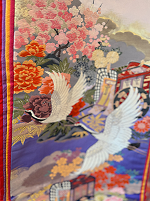 大き目の鶴と桐の花がレトロな雰囲気を醸し出して