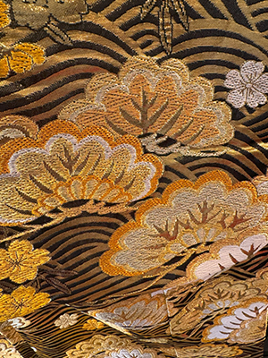 The fabric is danshi, and it has gold thread with a sunago pattern.